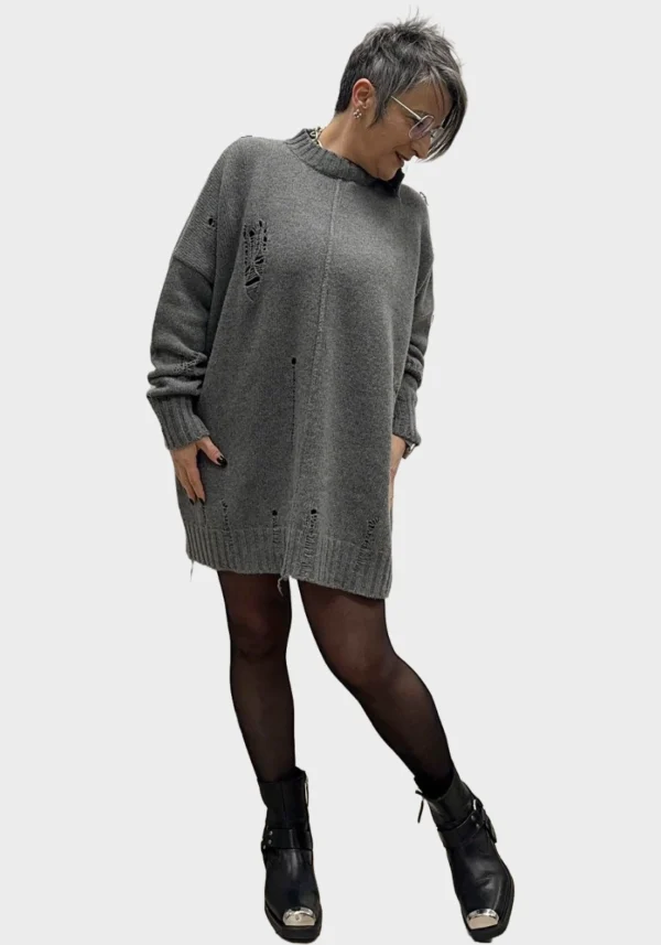 Maglione Lungo Oversize in Lana Grigia | Ès se re di Valentina